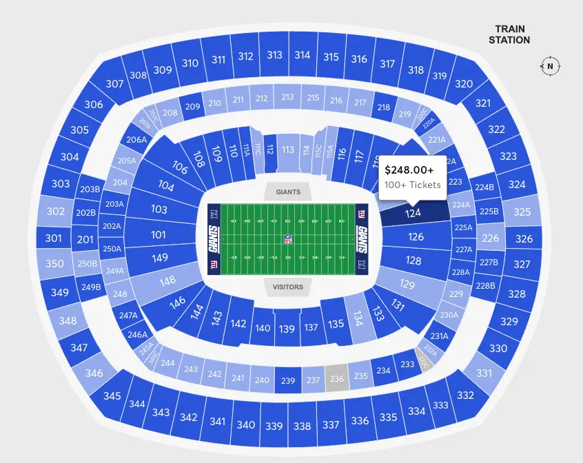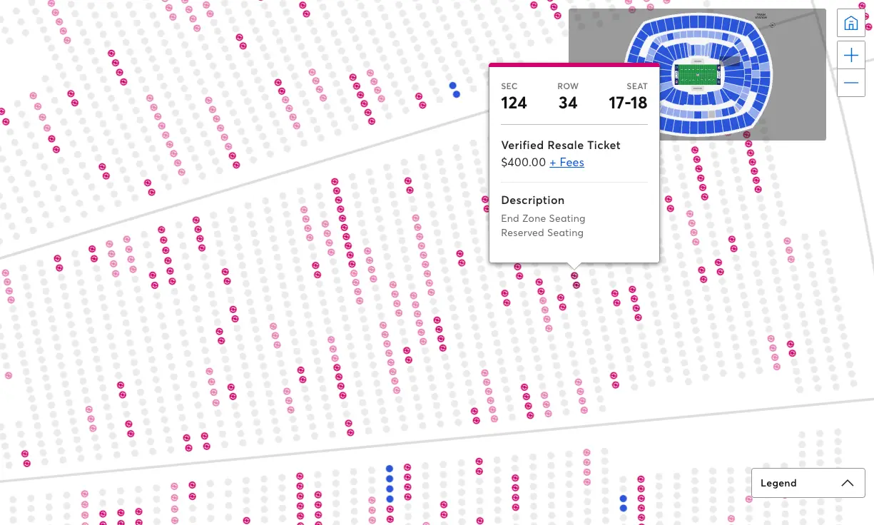 If a user clicks into a section of interest, Ticketmaster's UI then shows the individual seats and ticket information.